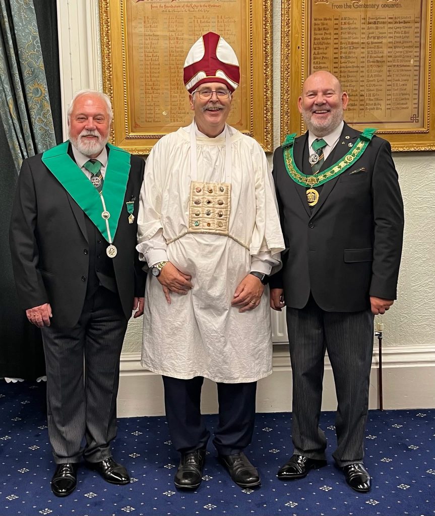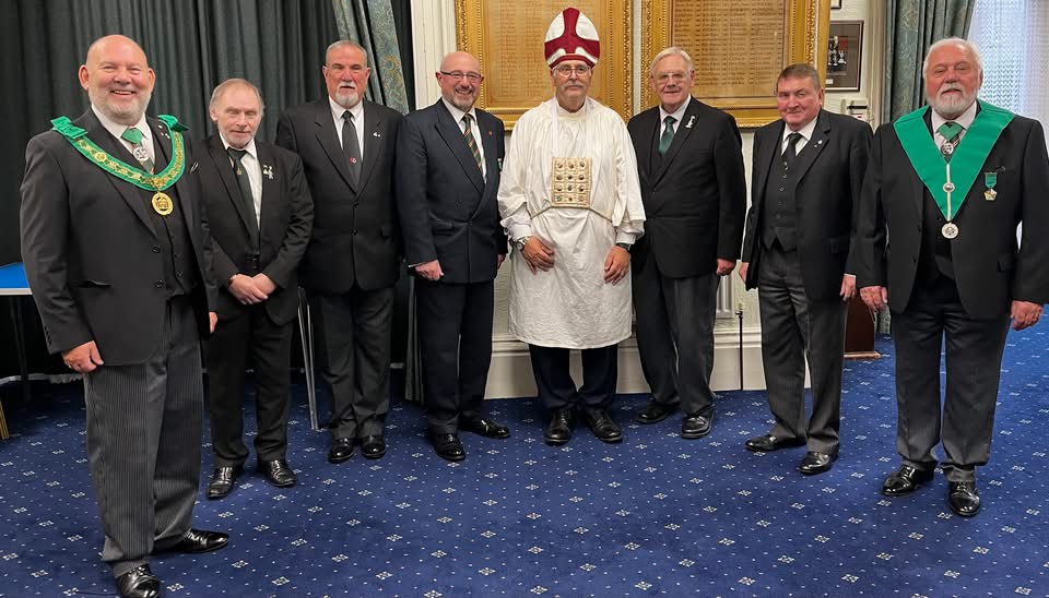 Today saw the St Lawrence Council of Installed Masters conduct the Grand High Priest Ceremony. W Bro John Green did his usual excellent delivery of this most enjoyable ceremony and was well supported by the members of the Council. 5 candidates from Yorkshire and other Districts attended to have the Degree conferred upon them. The only slight hiccup was the lighting failure at Greenhead Masonic Hall, which added to the atmosphere. The social board was full of banter and humour W Bro John Clough the WM was in great form as always and AGDC W Bro Stephen Sharp responded for both Grand and District Councils in a light hearted manner.