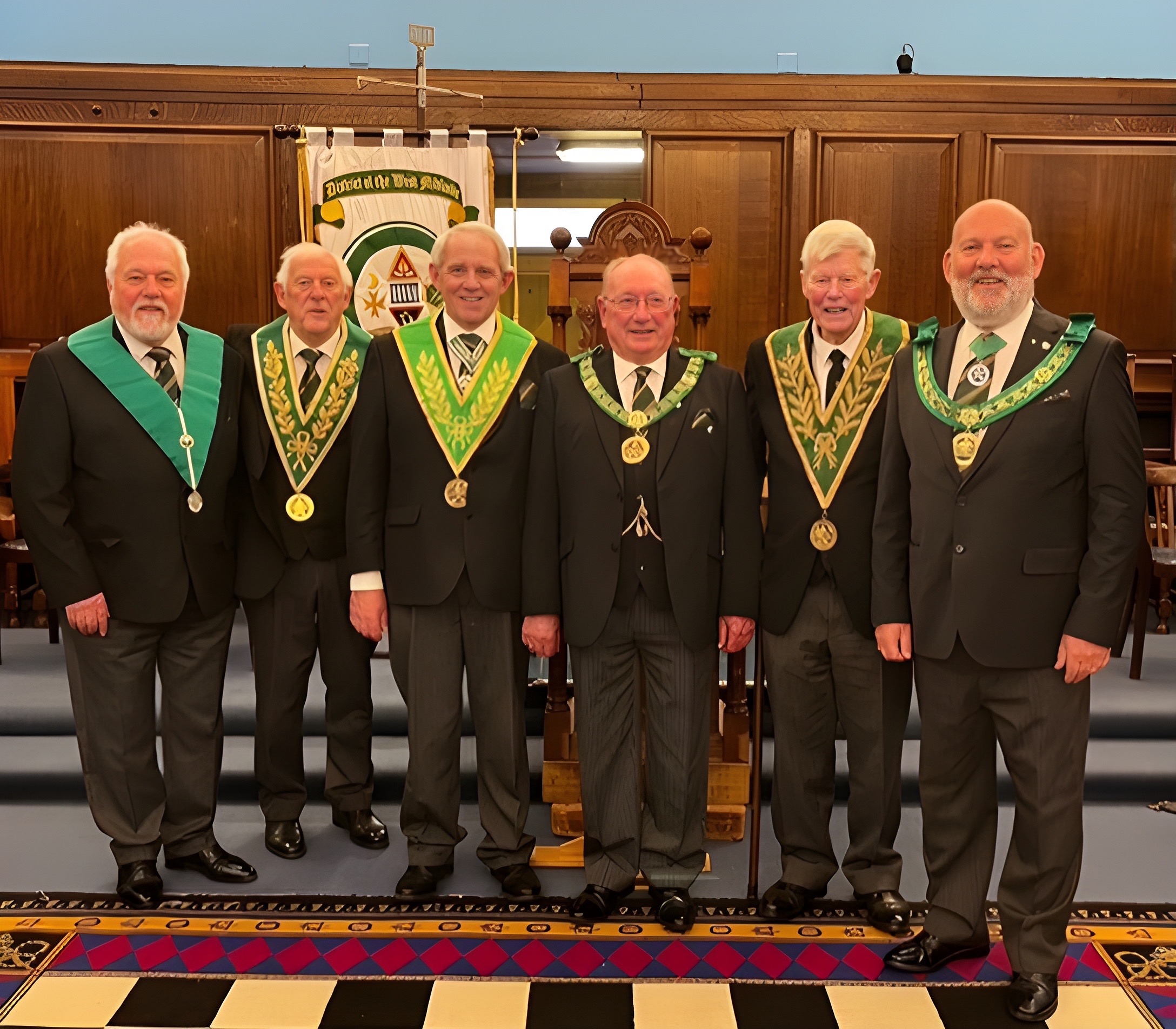 Saturday 31st January, members of Yorkshire Allied Masonic Degrees were out in force visiting Burton-on-Trent. The team of W Bro John Clough, W Bro Barry Massam, W Bro Clive Copley DDGP, V W Bro Alan Jones and W Bro Stephen Sharp AGDC accompanied R W Brian Butterfield DGP to the West Midlands AGM. After coffee and bacon sandwiches time was spent meeting with many Allied friends from across the country. Once the meeting concluded a very enjoyable festive board took place, in which a large amount of profiteroles were consumed by one member of the Yorkshire delegation – no prizes for guessing who!!!