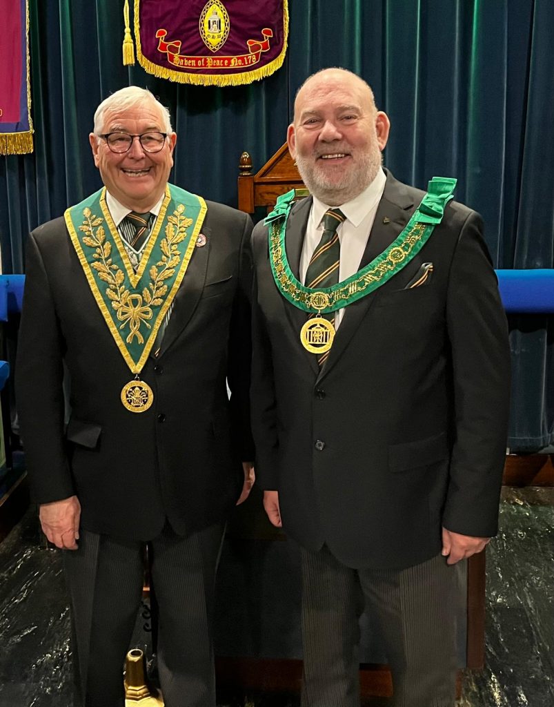 W Bro Stephen Sharp DepDistGDC on the left, and our DistGPref RW Bro Brian Butterfield on the right. Taken at the Masonic Centre, Cleator Moor on Saturday 16th November 2024, following the AGM for Cumberland & Westmorland.